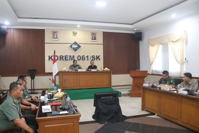 Wakil Bupati Sukabumi Iyos Somantri melakukan Rapat Koordinasi Persiapan Pelaksanaan TMMD ke-121 kepada Pangdam III Siliwangi. Kegiatan tersebut dilakukan secara virtual di Ruang Vicon Makorem 061 Suryakencana, Kota Bogor, hari ini.