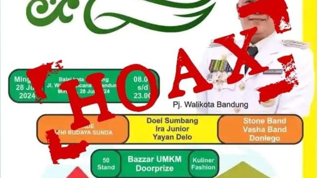 "Sehubungan dengan adanya penyebarluasan poster atau flyer yang ada di atas, Dinas Koperasi dan UKM Kota Bandung tidak pernah mengadakan acara tersebut," tulis keterangan resmi Diskop UKM Kota Bandung sebagaimana dikutip detikJabar, Jumat (26/7/2024).