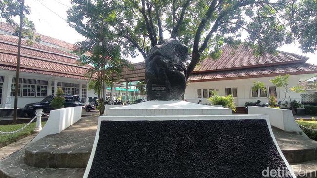 Di pekarangan bangunan dengan gaya arsitektur klasik itu, terdapat sebongkah batu besar. Bongkahan batu besar itu menjadi semacam penanda atau monumen atas musibah bencana erupsi Gunung Galunggung pada 1982 silam.