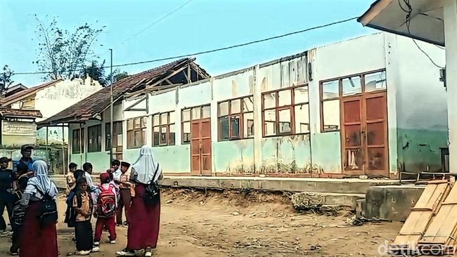 "Kondisi sekolah hari ini, dilihat bangunannya sangat tidak layak untuk digunakan. Oleh sebab itu, rombongan belajar mengajar dibagi menjadi dua, ada yang siang sampai kelas 4 ke atas, kalau kelas 3 ke bawah di pagi hari. Sebetulnya rusaknya sudah lama, tapi kebetulan beberapa waktu lalu ada hujan besar itu atapnya ambruk. Asalnya layak masih bisa dipakai, tapi sekarang tidak memungkinkan, jadi belajar ada yang di-dua shift-kan," kata Habudin kepada awak media, Rabu (31/7/2024).
