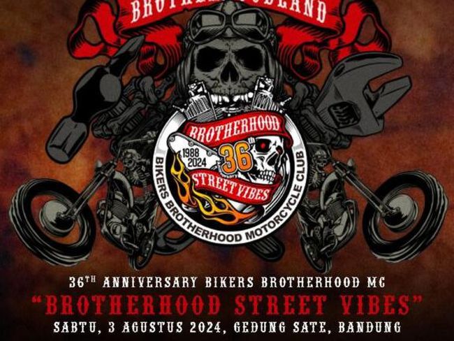 "Mari nikmati dan rayakan bersama kami, peringatan 36th Anniversary Bikers Brotherhood MC Indonesia bertempat di Jalan Diponegoro No 22, Bandung. Dan mohon maaf atas kemacetan bagi warga sekitar dengan adanya event kami," tuturnya menambahkan.
