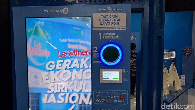 Pengunjung hanya perlu memasukkan botol plastik berbahan PET atau berkode 1 ke dalam reverse vending machine milik Plasticpay, mitra Le Minerale dalam gerakan nasional Ekonomi Sirkular. Saat botol tertarik otomatis dan lampu berubah warna dari biru ke hijau, pengunjung dapat mengklaim poin dengan memindai QR Code menggunakan aplikasi Plasticpay. Setiap botol PET dihargai 56 poin, yang setara dengan Rp 56 jika dikonversi ke e-wallet.