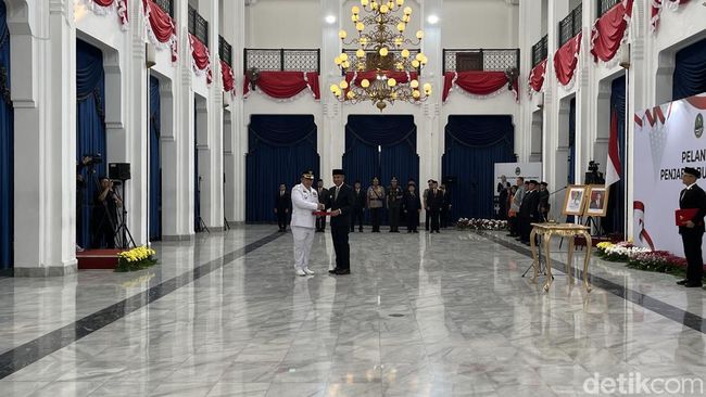 Pj Gubernur Jawa Barat Bey Machmudin melantik Dedy Supriyadi sebagai Pj Bupati Bekasi. Pelantikan dilakukan di Aula Barat Gedung Sate, Kota Bandung, Kamis (15/8/2024).