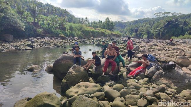 "Kebetulan ini kan alirannya dibendung di Bendungan Leuwikeris. Jadi orang-orang pada turun ke sungai ngambil ikan," ungkapnya saat ditemui di pinggir sungai.
