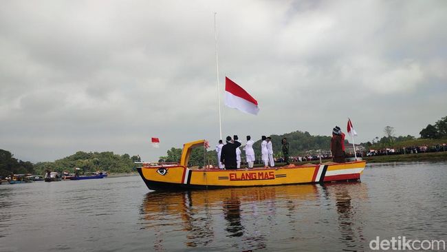 Pantauan detikJabar, sejak pukul 07.00 WIB, ribuan warga mulai berkumpul di pinggir Situ Lengkong Panjalu yang akan menjadi peserta upacara. Sedangkan di tengah danau sudah berjajar sejumlah perahu. Tiang bendera berdiri di tengah danau dengan menggunakan ponton.