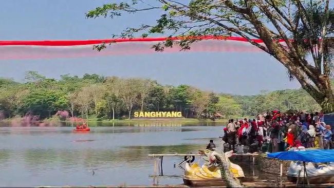 Berbagai cara dilakukan untuk memeriahkan HUT ke-79 RI. Sehari usai peringatan hari kemerdekaan, pengibaran bendera raksasa dilakukan di atas Situ Sanghyang, Tanjungjaya, Kabupaten Tasikmalaya, Jawa Barat Minggu (18/8/24).