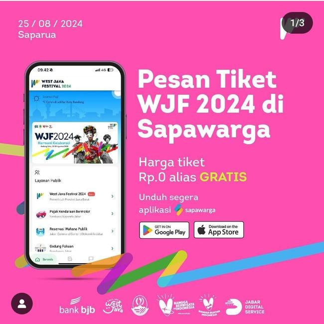 Ribuan warga Kota Bandung dan sekitarnya, malam ini dipastikan tengah memantau gawai. Mereka berebut mendapatkan tiket gratis acara West Java Festival (WJF) 2024 untuk puncak konser tanggal 25 Agustus mendatang.