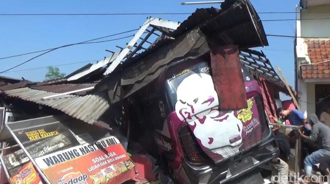 Amih mengatakan, saat elf menabrak warungnya ia berhasil selamat. Namun, kata dia, akibat peristiwa ini terdapat tiga orang penumpang dari kendaraan elf bernomor polisikan E 7897 VB itu mengalami luka-luka dan telah dilarikan ke rumah sakit terdekat.