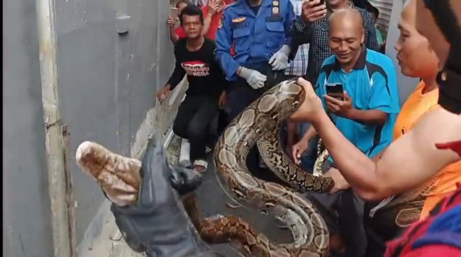 "Ular jenis sanca dengan panjang kurang lebih 4 meter. Ular berhasil dievakuasi dalam keadaan hidup. Penanganan berlangsung selama kurang lebih 15 menit," kata Ade.