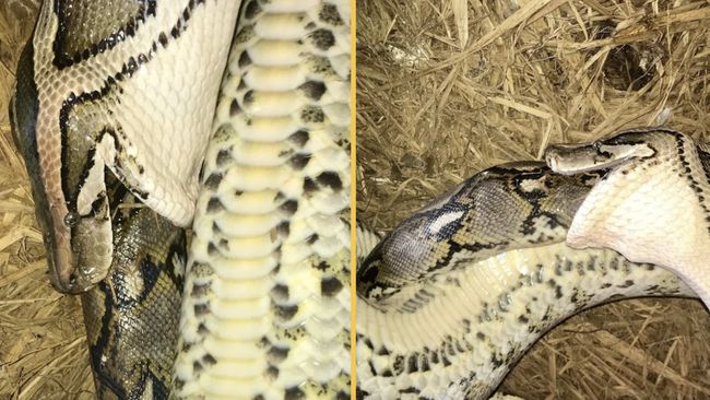 Mengutip detikInet dari Live Science, kejadian ini dilaporkan terjadi pada 2020 silam, piton Burma memangsa piton batik dari ekor ke atas dalam keadaan hidup-hidup.