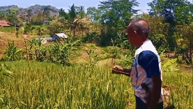 Ada pemandangan tak biasa di sawah milik warga Kampung Ciwangun, Desa Wangunreja, Kecamatan Nyalindung, Kabupaten Sukabumi. Agus (56), pemilik sawah, menggunakan cara yang cukup unik dan menggelitik untuk mengusir burung-burung yang sering hinggap di padi miliknya.