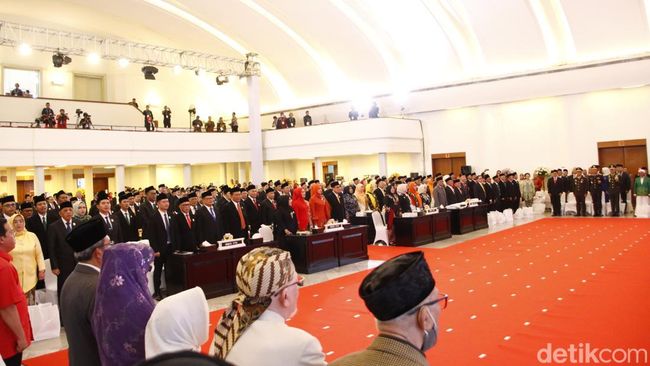 Pelantikan anggota DPRD Jawa Barat (Jabar) telah dilangsungkan di Gedung Merdeka, Kota Bandung, Senin (2/9/2024). Sebanyak 120 orang akan akan mengemban tugas menjadi anggota dewa untuk periode 2024-2029.