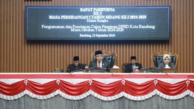 Penetapan tiga calon pimpinan dilakukan dalam rapat paripurna DPRD Kota Bandung yang digelar Jumat (13/9/2024) kemarin.