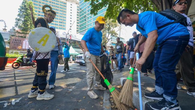 "Relawan Arfi-Yena ikut dalam kebahagian dari penyelenggaraan acara juga merayakan Hari Jadi Kota Bandung. Sebagaimana halnya pesta yang ada piring kotor selepas pesta, tiap penyelenggaraan acara ada potensi timbulan sampah. Kami menyapu dan memungut sampah dengan harapan memelihara kebersihan selepas acara, juga membantu para petugas dari DLH," kata Kang Arfi di sela kegiatan menyapu dan memungut sampah di Taman Sejarah, Kota Bandung, Minggu (15/9/2024).