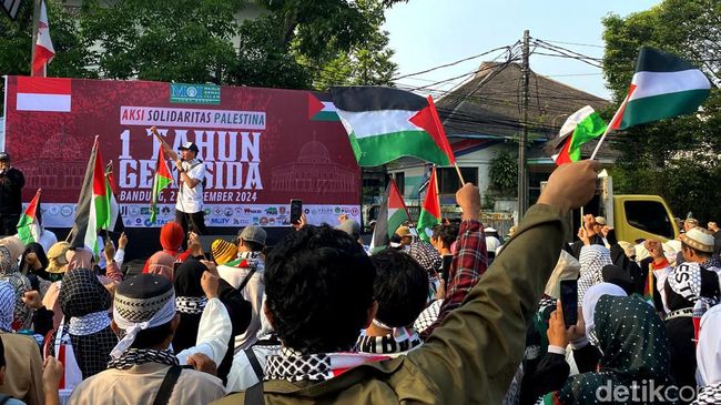 Ratusan orang di Kota Bandung menggelar aksi bela Palestina. Aksi digelar Majelis Ormas Islam (MOI) Jabar dan diikuti organisasi lainnya sebagai bentuk keprihatinan terhadap rakyat Palestina yang sudah 1 tahun ditindas oleh zionis Israel.