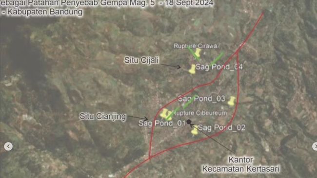 "Badan Geologi sudah identifikasi patahan penyebab gempa yang terjadi di Kabupaten Bandung Mag 5.0 pada hari Rabu pagi tanggal 18 September 2024, gempa bumi merusak tersebut sebagai akibat patahan/sesar Kertasari," ujar Sukahar Eka.