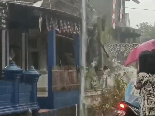 Di tengah hujan deras tersebut, warga di kawasan itu digemparkan dengan robohnya sebuah rumah yang diketahui milik Bambang. Robohnya rumah Bambang ini terekam oleh video amatir yang diambil oleh warga.