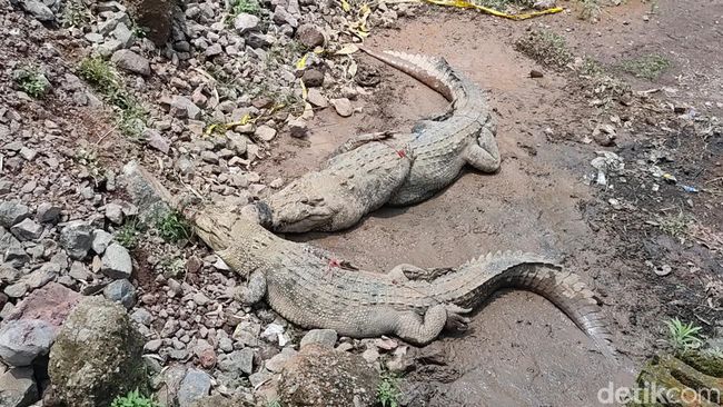 "Jadi ada lima, dua yang kabur ke luar. Dan ada tiga yang kabur ke pengolahan galian C. Dan itu sudah semua, soalnya tadi saya sudah muter ke setiap titik tidak ada lagi buaya yang terlihat," kata dia.