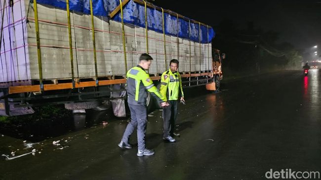 Lebih lanjut, terdapat truk Fuso yang sedang parkir. Truk tersebut diparkirkan di badan jalan diduga sedang mengalami kerusakan rem.