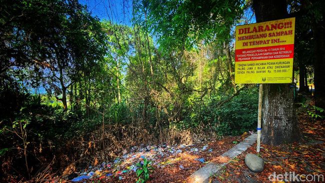 Namun, keberadaan papan larangan tersebut seolah tidak berarti. Di sekitarnya, hamparan lautan sampah justru terlihat mengotori kawasan konservasi yang seharusnya dilindungi. Tumpukan sampah plastik, popok, hingga sisa makanan berserakan di tanah, masuk hingga ke dalam area cagar alam yang menjadi habitat satwa liar.