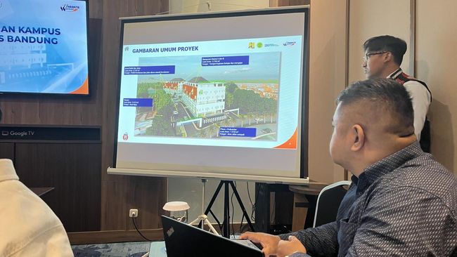 "Total bangunan dengan lantai itu 7971 meter persegi. Jadi kalau 2 bangunan itu totalnya ruasanya 15.942 meter persegi. Itu total bangunan untuk gedungnya," ucap Muzakki, Manager Proyek WSBP Pembangunan Unipi Persis Bandung di Oakland Hotel Bandung, Senin (14/10/2024).
