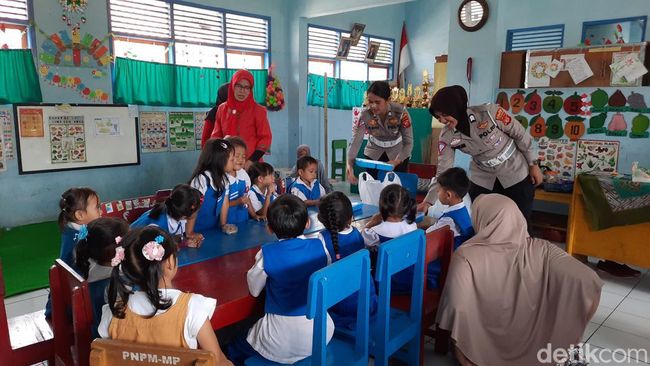 Ratusan pelajar Sekolah Dasar Negeri (SDN) Sukapura 1 dan taman kanak-kanak di Kecamatan Sukaraja, Kabupaten Tasikmalaya, Jawa Barat mendapatkan makan sehat gratis dari kepolisian.