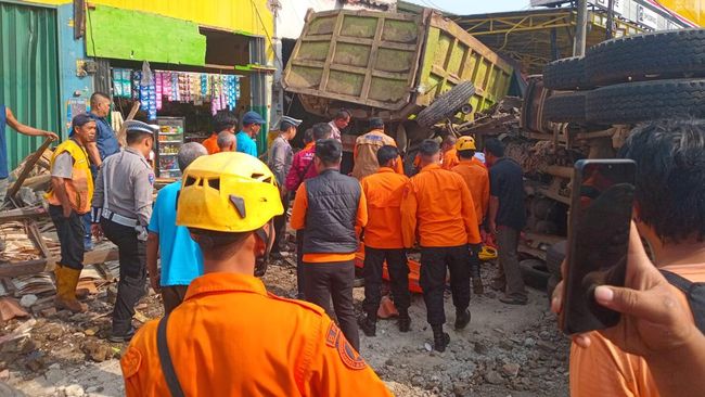 Tak hanya itu, ada juga mobil yang terkena material muatan truk dan tertindih dump truk ini. "Pada saat itu juga dump truk terbalik dan kena ke minibus APV dan Daihatsu Grand Max yang datang dari arah berlawan," ujarnya.