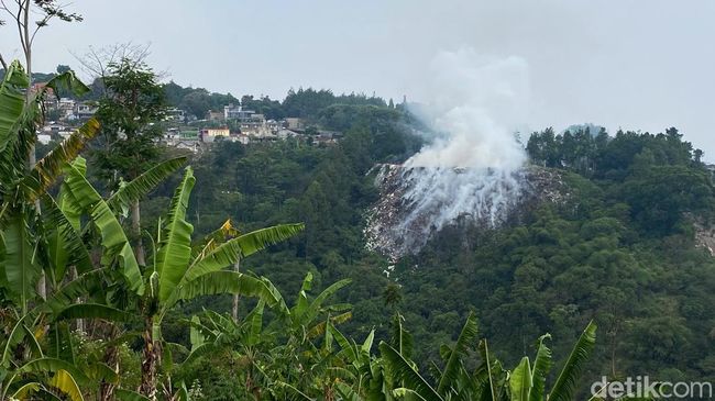 Lahan kosong yang dijadikan sebagai tempat pembuangan sampah pribadi yang ada di Jalan Rereongan Sarupi, Cimbuleuit, Kota Bandung terbakar. Kepulan asap putih mengepul di lokasi.