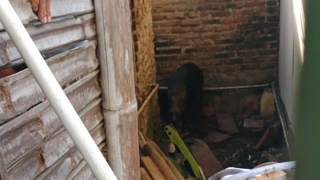 Asep Edom, salah satu pemilik warung di kawasan tersebut membenarkan babi hutan itu terjebak di dalam gang dekat dengan warung warga.