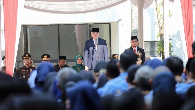 Pemerintah Kota Cimahi menggelar upacara peringatan ke-96 Hari Sumpah Pemuda di Lapangan Apel Kantor Pemerintah Daerah Kota Cimahi, Senin (28/10/2024).