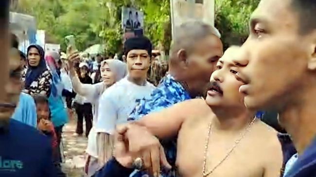 Dilihat detikJabar dari sejumlah video yang beredar, pria berkumis tebal itu terlihat marah-marah. Dia berteriak ke arah panggung. Tidak lama kemudian dia membuka kaus putihnya, seraya bertelanjang dada ia berlari ke arah panggung.