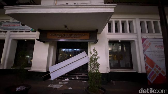 Suara itu berasal dari atap gedung Yayasan Pusat Kebudayaan (YPK) yang mengalami ambruk, Senin (28/10/2024). Warga dan Satpol PP langsung masuk dan membantu sejumlah orang yang terkena percikan material bangunan.