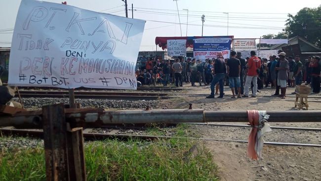 Warga dari dua kelurahan di Kecamatan Purwakarta berunjuk rasa menolak penutupan akses jalan di perlintasan sebidang di Kampung Bojong sekitar Stasiun Kereta Api Purwakarta. Mereka menduduki area perlintasan.