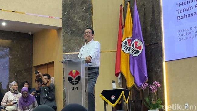 Anies Baswedan mengisi kuliah umum di Auditorium Fakultas Pendidikan Bahasa dan Sastra Universitas Pendidikan Indonesia (FPBS UPI) pada Rabu (6/11/2024). Dalam materi bertajuk 'Meningkatkan Rasa Cinta Tanah Air melalui Pendidikan Bahasa dan Sastra', Anies bicara banyak soal menjaga bahasa Indonesia hingga bertutur di media sosial.