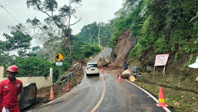 "Jadi material longsoran tidak hanya tanah tapi juga bebatuan, bahkan ada juga batu yang besar yang menutup seluruh badan jalan," sambung Maman.