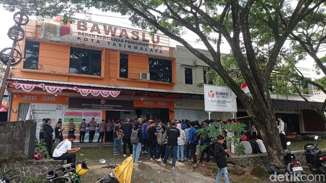 Puluhan aktivis mahasiswa menggeruduk kantor Bawaslu di Jalan Letnan Harun Kota Tasikmalaya, Selasa (12/11/2024) petang.