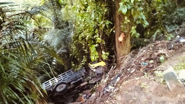 "Namun, sesampainya lokasi TKP, truk oleng ke kiri jalan dan masuk ke dalam jurang sedalam sekitar 5 meter," kata Dimas kepada detikJabar saat dihubungi.