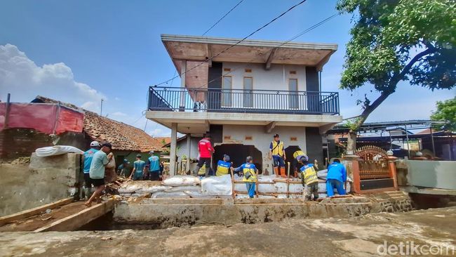 Pantauan detikJabar di lokasi, beberapa petugas dari TNI, Polri dan BBWS terlihat turut terlibat dalam pembersihan. Area tanggul tersebut saat ini telah dibangun tanggul sementara dengan menggunakan karung berisikan pasir.