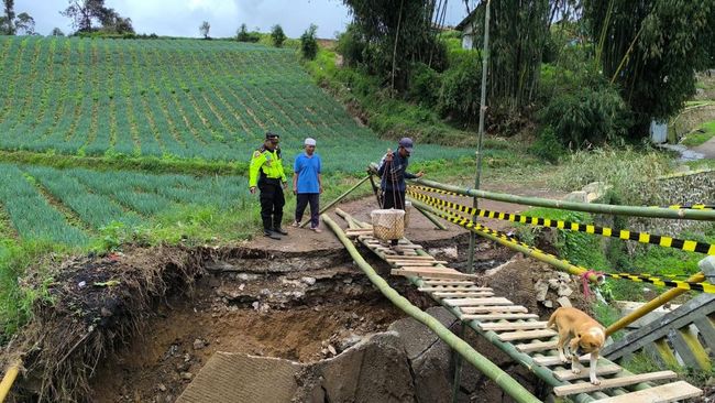 Kapolsek Kertasari Iptu Fajar Sodiq menyebut, ambruknya jembatan penghubung dua desa gegara intensitas hujan yang cukup tinggi. Tidak ada korban dalam kejadian itu.
