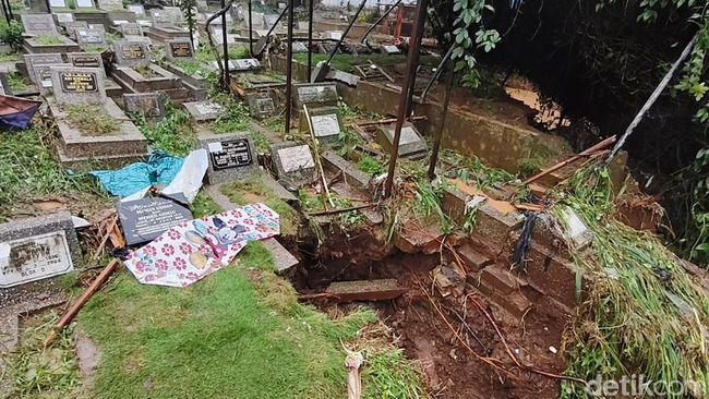 "Saya meninjau langsung ada 20 makam yang terdampak dan 2 jenazah sempat keluar dan sudah dievakuasi," ucapnya.