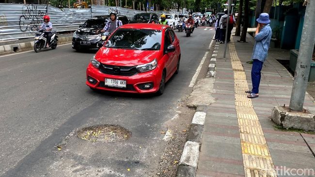 "Ada yang mau jatuh pas beberapa hari lalu, pas kondisi hujan, untung aja lagi posisi pelan, pengguna motor itu kaget liat lubang terus tiba-tiba menghindar ke kiri jalan, kalau posisi ngebut bisa lebih bahaya," ujar Dedi.