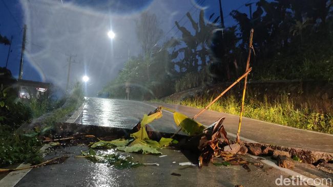 Selain itu, akses menuju Curug Citambur juga terkena dampak pergerakan tanah. Pantauan detikJabar ada empat titik jalan yang patah hingga akses jalan hanya bisa dilalui satu jalur kendaraan.