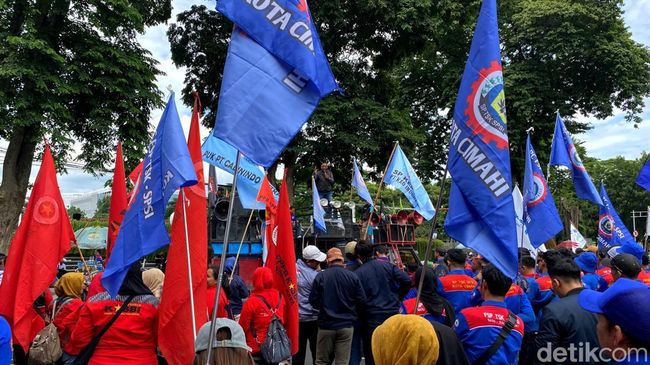 "Hari ini adalah demo pengawalan, karena hari ini sampai besok ada rapat pleno dewan pengupahan Provinsi Jawa Barat untuk membahas upah minimum kabupaten atau kota (UMK) dan upah minimum sektoral kabupaten/kota (UMSK)," kata Ketua KSPSI Jabar Roy Jinto usai melakukan orasi.