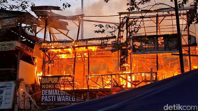 Alhasil, total jadi tiga warung ikut terbakar. Semuanya berbahan bangunan kayu. Api terus merembet dan meluluhlantakan seisi bangunan hingga rata dengan tanah. Beruntung api dapat dipadamkan sehingga tidak merembet ke semua rumah makan yang ada di sana.