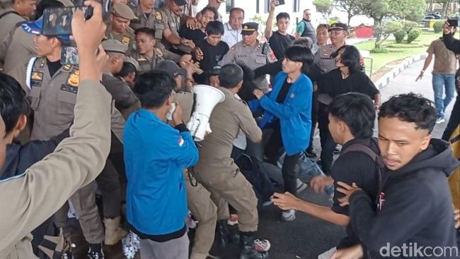 Jalannya aksi yang dikawal aparat gabungan Satpol PP dan polisi ini sempat diwarnai ketegangan. Demonstran yang berusaha masuk diadang aparat, sehingga terjadi aksi saling dorong dan kontak fisik.