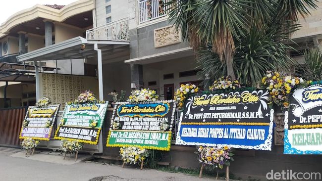 Pantauan detikJabar di kediamannya, Komplek Permata Biru, Kelurahan Cinunuk, Kecamatan Cileunyi, Kabupaten Bandung, nampak beberapa karangan bunga telah terpasang berjejer. Nampak kondisi kediamannya dalam keadaan sepi tidak ada orang.