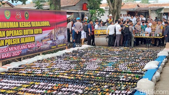 Hal itu sebagai bentuk antisipasi menjelang malam pergantian tahun baru berujung aksi kriminalitas dan gangguan keamanan. "Jadi dalam kurun waktu beberapa pekan ini, kami menyita 11.321 botol miras lalu kami musnahkan hari ini. Ada juga 329 liter tuak, dan 370 plastik ciu," kata Kapolres Cimahi, AKBP Tri Suhartanto saat ditemui, Senin (30/12/2024).