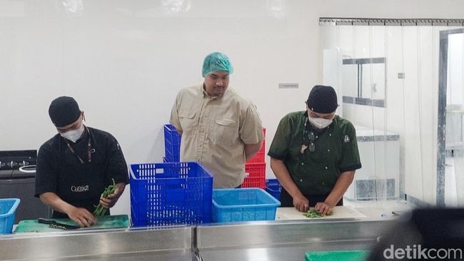 "Menunya ayam opor, nasi, sayur, semangka, buncis, dan susu. Jadi kita lihat, proteinnya ada dari lauk, lalu gizi dari sayur, dan susu. Setelah dikemas, dari dapur ini akan langsung didistribusikan ke sekolah. Di dapur ini, untuk 3.500 porsi," kata Dito.