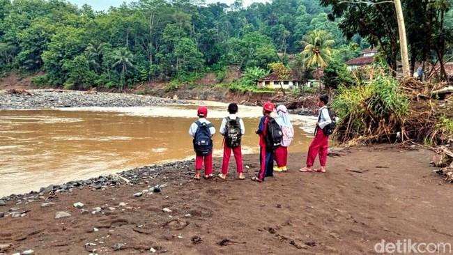 Kegundahan menyelimuti Lisda, Kepala Sekolah SDN Pasir Pogor di Desa Loji, Kecamatan Simpenan, Kabupaten Sukabumi. Pasca banjir bandang yang menghancurkan jembatan gantung penghubung antardesa, sejumlah siswa terpaksa berenang menyeberangi sungai demi melanjutkan aktivitas belajar.