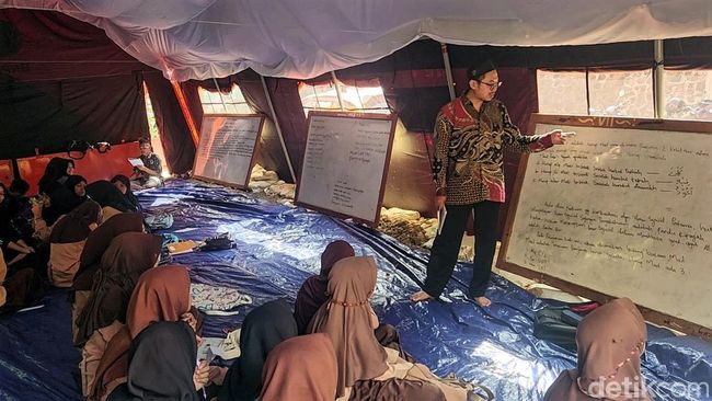 Informasi yang dihimpun detikJabar menyebutkan, para siswa sudah belajar di tenda sejak Senin (6/1/2025). Tenda berukuran 5 x 8 meter milik BNPB itu dijadikan ruang belajar sementara agar kegiatan belajar mengajar tetap berlangsung meskipun dalam kondisi terbatas.